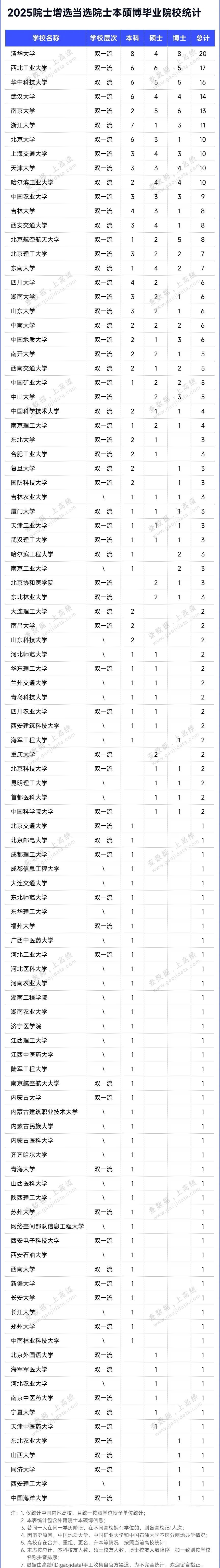據(jù)相關(guān)機(jī)構(gòu)梳理,從2025兩院院士增選當(dāng)選院士的校友數(shù)據(jù)來(lái)看,在總?cè)舜紊希迦A大學(xué)摘得桂冠,共有20人次;西北工業(yè)大學(xué)緊隨其后,有17人次入選。華中科技大學(xué)位列第三,有16人次。校友人次在10及以上的高校還有武漢大學(xué)、南京大學(xué)、浙江大學(xué)、北京大學(xué)、上海交通大學(xué)、天津大學(xué)和哈爾濱工業(yè)大學(xué)。