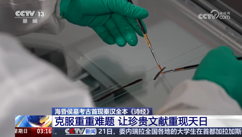 剛剛我們也提到,海昏侯墓最新發(fā)現(xiàn)的這個全本《詩經》是被記錄在1200枚簡牘上面的,這些珍貴的簡牘是如何被發(fā)現(xiàn)的,出土時是什么狀態(tài),文物修復工作者又面臨哪些技術難題呢?