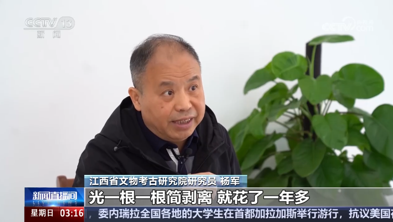 江西省文物考古研究院研究員楊軍:“在實驗室里面,光一根一根簡剝離,就花了一年多,因為簡埋藏2000年都散掉了,前后次序都是散掉的,在實驗室里面就要根據考古學的方法,把它上下疊壓的關系搞清楚,哪個在上,哪個在下!